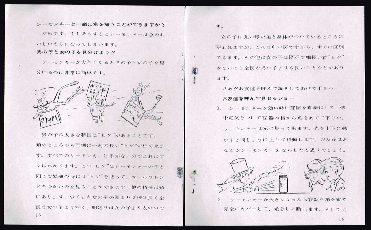 元大学図書館員 みどりの水にすむ シーモンキー育てかた ハンドブック 1971 7 改訂版 最初のシーモンキー の水には着色料が入っていて No 1で青色に No 2を入れると緑色に変化して孵化スタンバイしていたシーモンキーが生れるしくみでした